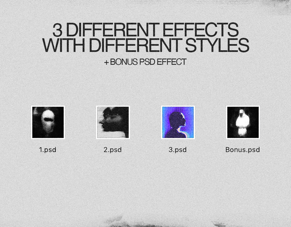 - 3 PSDs + 1 PSD Bonus Grainy Sandstorm Distortion Image Effect